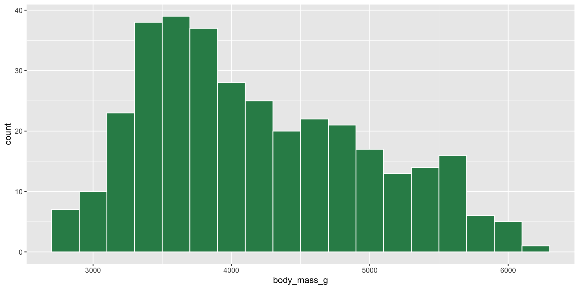 geom_histogram(binwidth=200, col="white", fill = "seagreen")